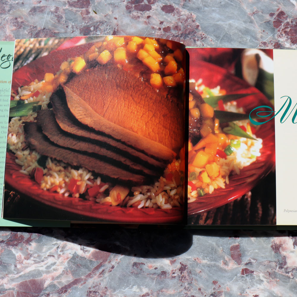 Tender, tempting slices of beef brisket, topped with tropical fruits, offer a dramatic way to serve the exotic fusion of flavors that is the mark of Polynesian island cuisine. This entree is ideal for a South Pacific theme dinner. Decorate your table with hibiscus (or other fresh flowers), green ferns, whole pineapples, and papayas. The foil method of cooking used in this recipe seals in all the savory juices and is uncomplicated. Additionally, if you prepare this entree a day ahead, the flavors will mingle nicely, and you will have less cooking to do non the day of the festivities.