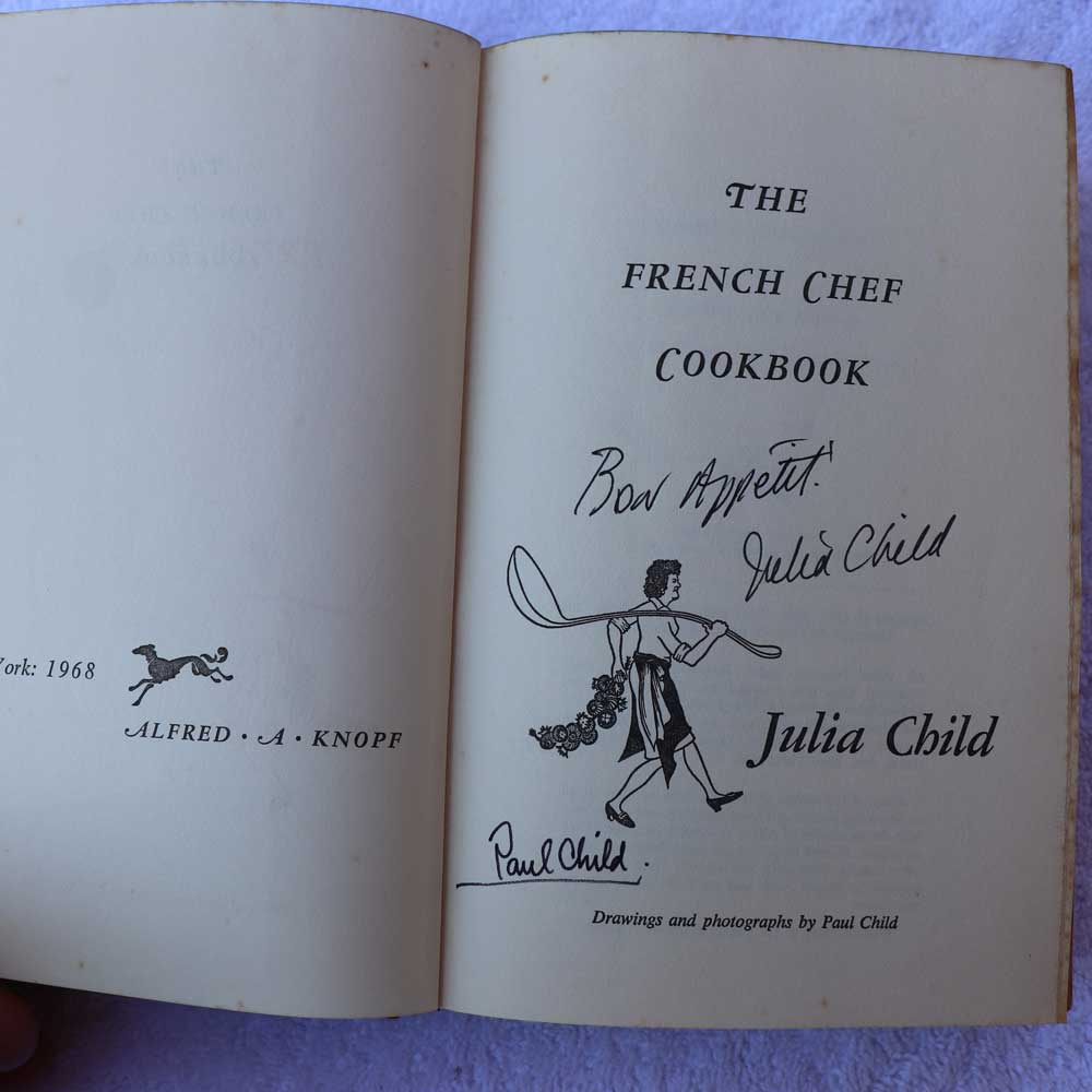 Face page is inscribed, “Bon Apetit, Julia Child” and also signed by “Paul Child.”